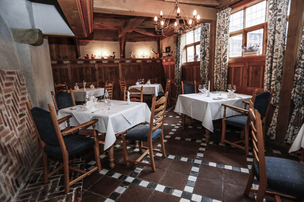 Schon der Weg zu unserem Restaurant ist voller außergewöhnlicher Impressionen: Hier ein Kunstwerk als Kronleuchter, dort ein historischer Kamin, eine antike Truhe, die Auswahl unter größeren und kleineren Stuben. Sie entscheiden selbst, ob Sie ein Tête à Tête, ein romantisches Candle-Light-Dinner oder ein genussvolles Essen unter Freunden bevorzugen. Unser ambitioniertes Küchenteam verwöhnt Sie gleichermaßen gerne mit bodenständigen regionalen Spezialitäten oder innovativen Kreationen – für den kleinen Appetit oder im Rahmen eines mehrgängigen Gourmetmenüs.